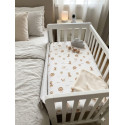 Prześcieradełko idealnie pasuje na materace do łóżeczka Chicco Next2me 50x83 cm (+/- 2 cm) oraz do innych dostawek w tym rozmiarze.