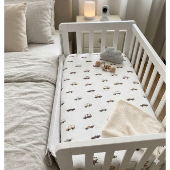 Prześcieradełko idealnie pasuje na materace do łóżeczka Chicco Next2me 50x83 cm (+/- 2 cm) oraz do innych dostawek w tym rozmiarze.