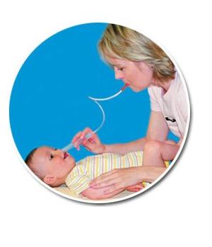 Ułóż dziecko w pozycji leżącej. Przyłóż końcówkę przyrządu do otworu nosowego dziecka, a następnie wciągnij powietrze przez ustnik. W razie konieczności - powtórz czynność.