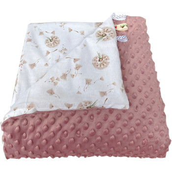 Kocyk dwustronny MINKY PUDROWY RÓŻ + WZORKI