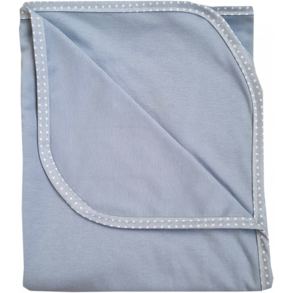 Delikatny kocyk wykonany z dwóch warstw 100 % bawełny, obszyty bawełnianą lamówką.