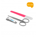 Zarówno nożyczki jaki i cążki wykonane są z higienicznej stali nierdzewnej. W zestawie znajduje się także pilniczek do delikatnego wygładzania nierówności.