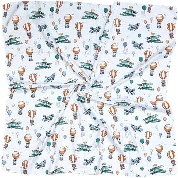 Pielucha, pieluszka otulacz muślinowy 120x120 cm avionauci