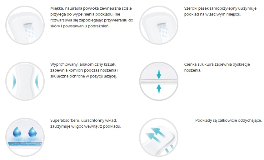 Superabsorbent, wkład o bardzo wysokiej chłonności zatrzymuje wilgoć wewnątrz podkładu.