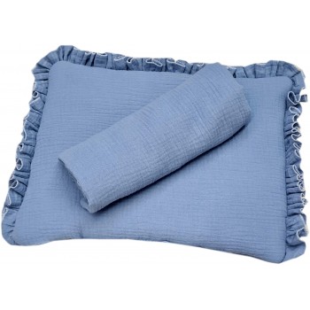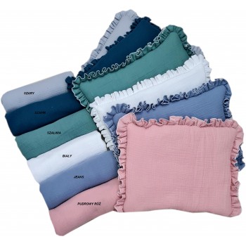 1. Poduszka 30 x 36 cm (+/- 2 cm) - płaska ok. 2 cm, zgodnie z zaleceniami neonatologów, obszyta z trzech stron uroczą falbanką