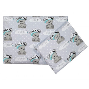 Pościel 2-el. do łóżeczka Misie boy szare z turkusem