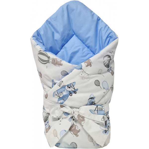 Obszyty jest w 100 % bawełnianą tkaniną. Posiada zaokrąglone brzegi i szeroki rzep, dzięki czemu łatwo nadać mu odpowiedni kształt podczas otulania maluszka. Dodatkowo posiada tasiemkę, za pomocą której możemy dokładnie otulić maluszka.
