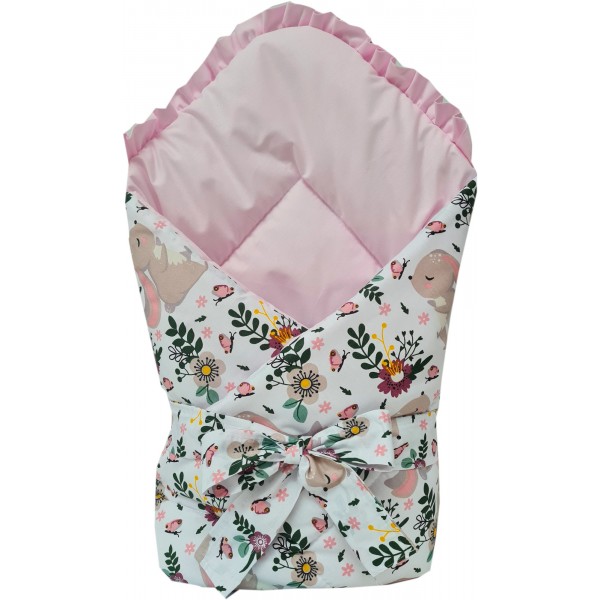 Obszyty jest w 100 % bawełnianą tkaniną. Posiada zaokrąglone brzegi i szeroki rzep, dzięki czemu łatwo nadać mu odpowiedni kształt podczas otulania maluszka. Dodatkowo posiada tasiemkę, za pomocą której możemy dokładnie otulić maluszka.