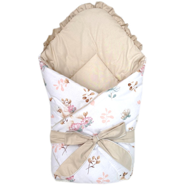 Rożek wiązany z falbanką Łabędzie beż