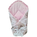 Obszyty jest w 100 % bawełnianą tkaniną. Posiada zaokrąglone brzegi i szeroki rzep, dzięki czemu łatwo nadać mu odpowiedni kształt podczas otulania maluszka. Dodatkowo posiada tasiemkę, za pomocą której możemy dokładnie otulić maluszka.