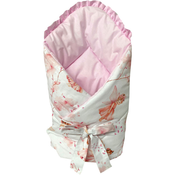 Obszyty jest w 100 % bawełnianą tkaniną. Posiada zaokrąglone brzegi i szeroki rzep, dzięki czemu łatwo nadać mu odpowiedni kształt podczas otulania maluszka. Dodatkowo posiada tasiemkę, za pomocą której możemy dokładnie otulić maluszka.