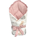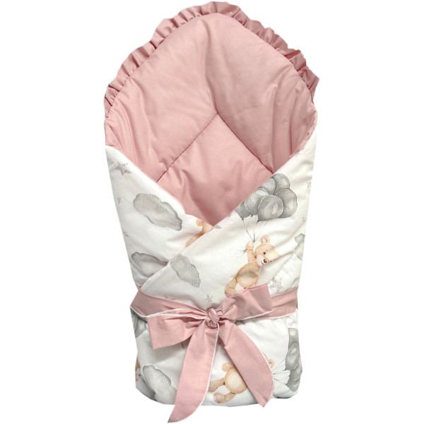 Obszyty jest w 100 % bawełnianą tkaniną. Posiada zaokrąglone brzegi i szeroki rzep, dzięki czemu łatwo nadać mu odpowiedni kształt podczas otulania maluszka. Dodatkowo posiada tasiemkę, za pomocą której możemy dokładnie otulić maluszka.