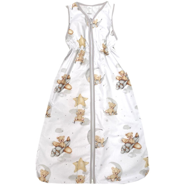 Śpiworek w wersji letniej jest wewnątrz podszyty bawełnianą flanelą. Równo utrzymuje temperaturę na całej długości zapewniając dziecku komfort termiczny.