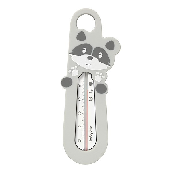Właściwości: • bezpieczny - bezrtęciowy • czytelna skala • pomocne oznaczenie temperatury wody właściwej do kąpieli dziecka • dokładny pomiar temperatury wody • unosi się na powierzchni wody • praktyczna zawieszka do bezpiecznego i higienicznego przechowywania Motyw uroczego szopa na szarym tle pasuje do naszego okrycia bambusowego oraz kubka do spłukiwania włosów.