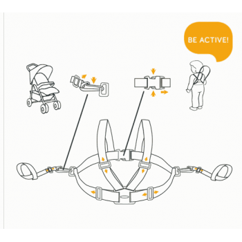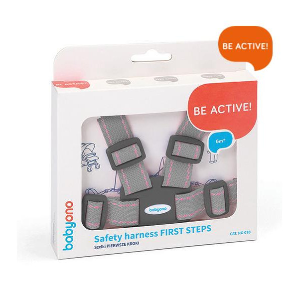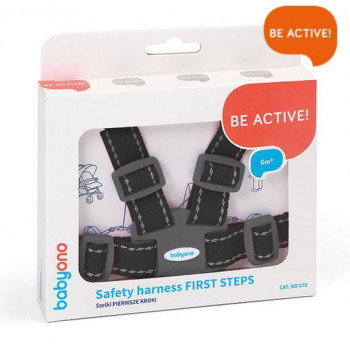 Szelki do wózka pomagają maluchowi samodzielnie stawiać pierwsze kroki, chroniąc go przed upadkiem.
